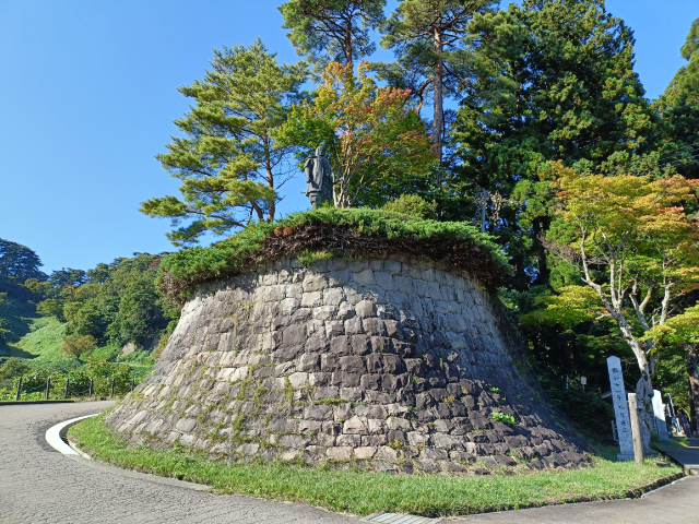 見晴らし屋のすぐ後ろには謙信公の銅像があります。