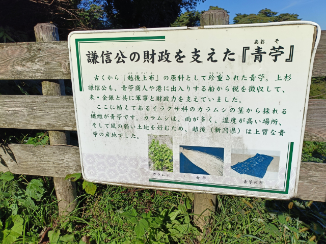 この青苧は「上越上布」の原料として使われていたそうで、越後の国の重要な収入源となっていたそうです。